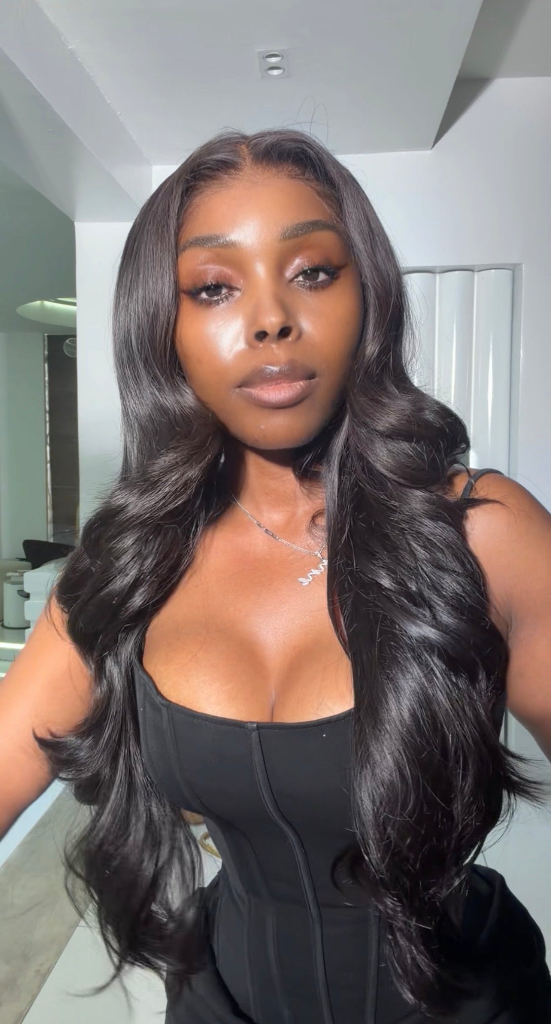 Turn heads with our Body Wave Lace Wig, made from 100% premium human hair for a flawless, natural finish. This unit features soft, flowing waves with a subtle middle part that frames the face beautifully while delivering volume, shine, and effortless elegance.